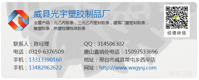 河北威县光宇塑胶,是专业门窗密封条制造商,主要生产三元乙丙密封条、硅胶密封条、PVC橡塑密封条、PVC透明密封条、热塑弹性体密封条、PVC颗粒材料的挤出产品等。